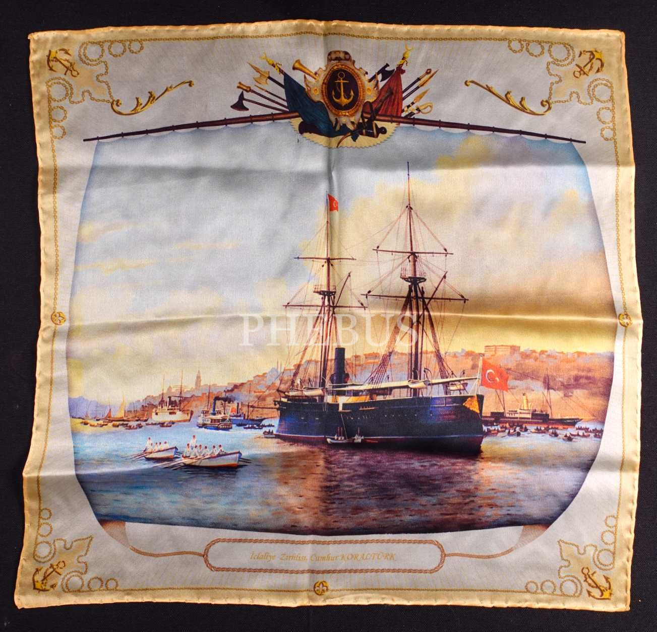 İclaliye Zırhlısı görselli ipek hatıra mendili, 39x40 cm