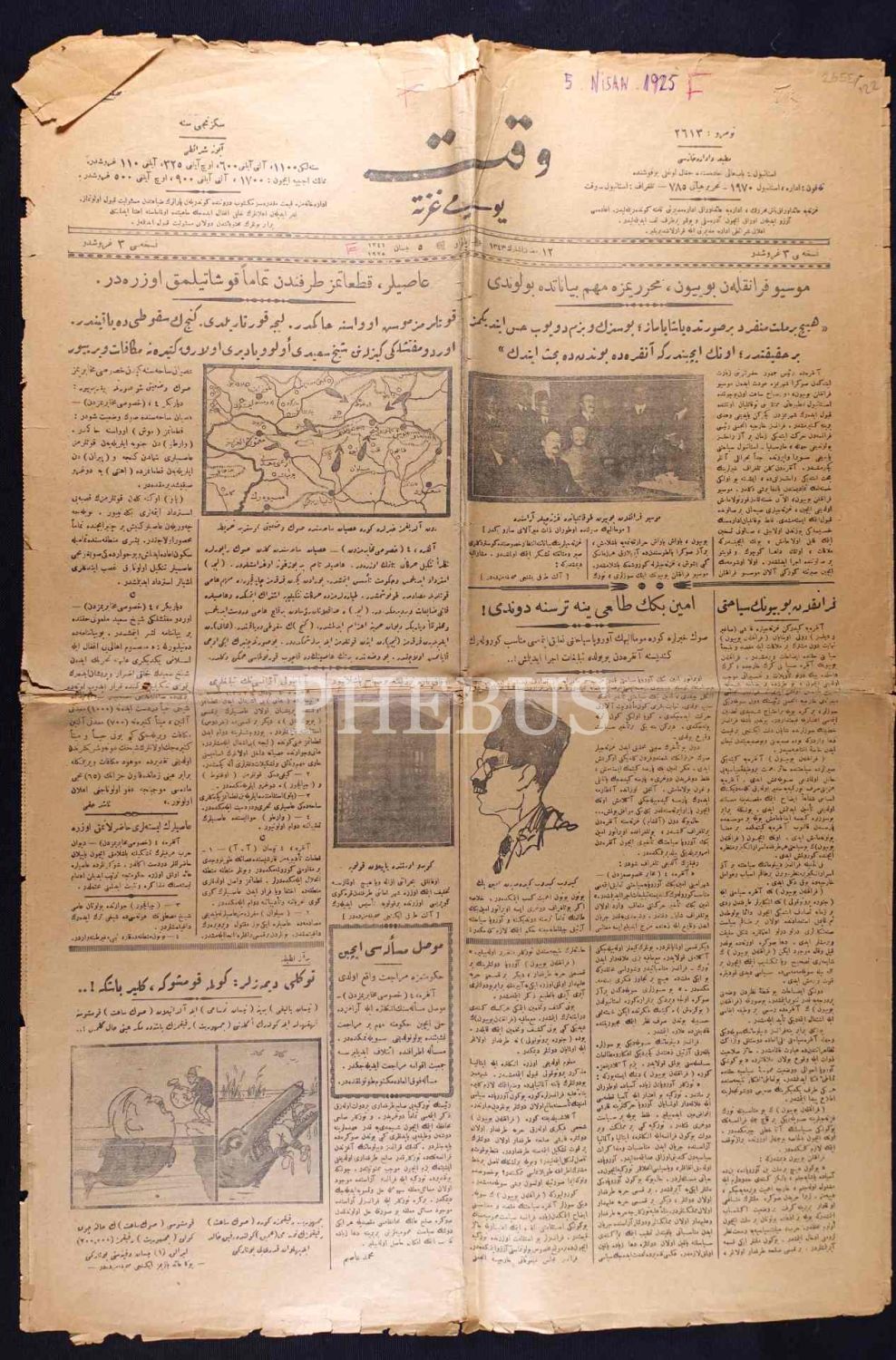Vakit gazetesinin 5 Nisan 1925 tarihli sayısı, 43x63 cm