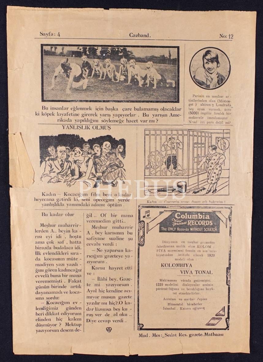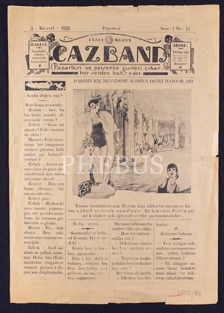 "Her şeiden bahseder" Cazband gazetesinin 3 Kanunuevvel 1928 tarihli sayısı, 28x41 cm