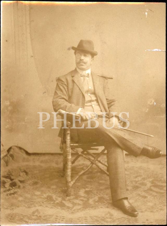 Bastonuyla poz veren Osmanlı beyefendisi/subayı, 8x11 cm, kenarları hafif yırrtık haliyle