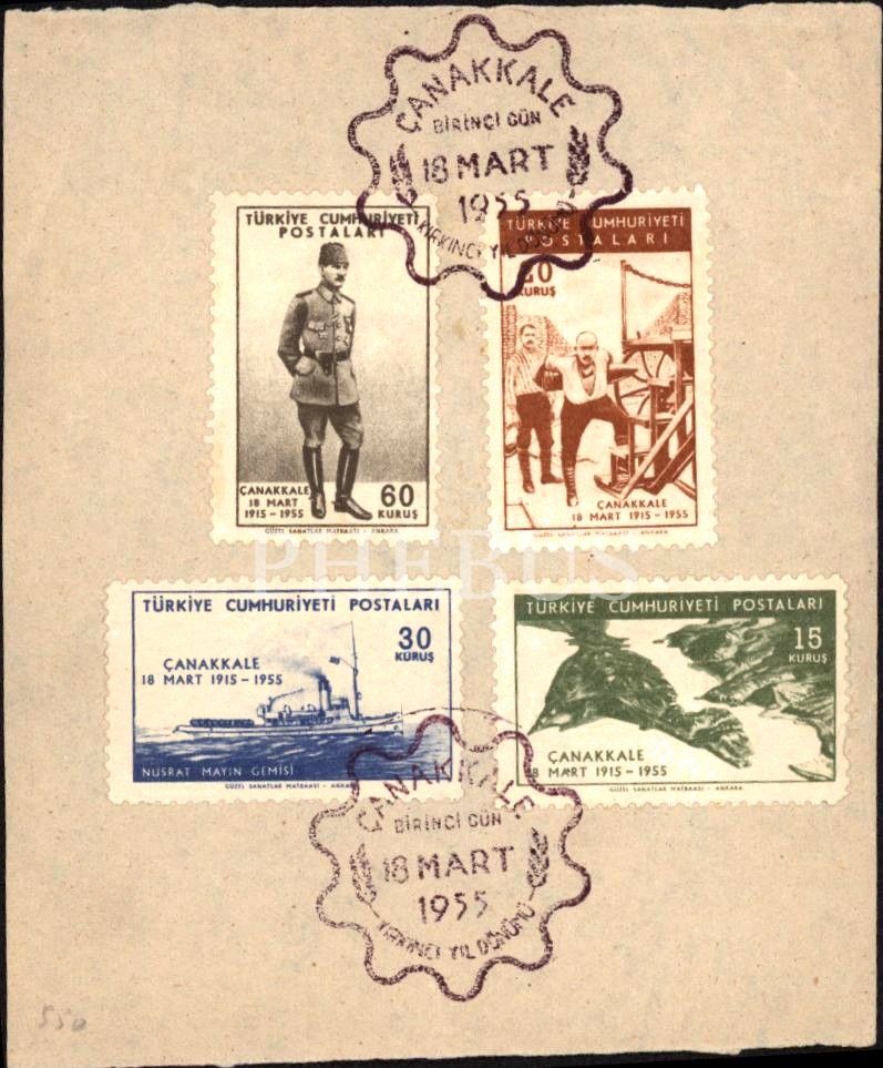 Çanakkale Birinci Gün posta pulları, sayfaya yapışık, sayfa: 10x12 cm