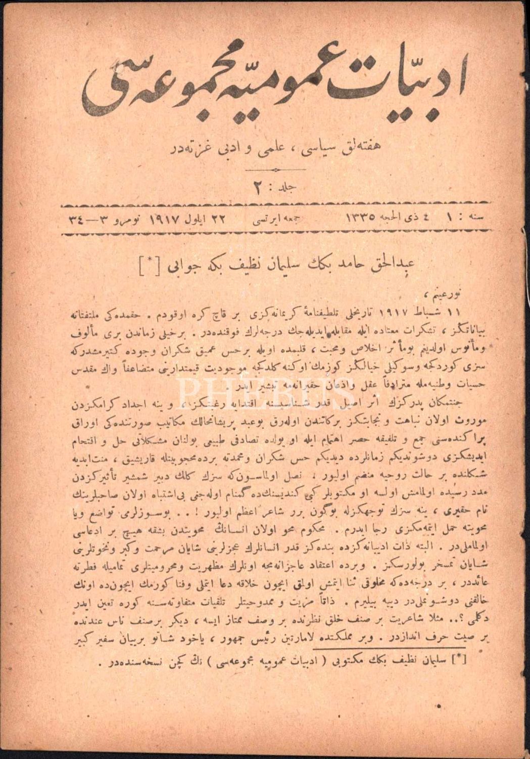 Edebiyyat-ı Umumiyye Mecmuası´nın 22 Eylül 1917 tarihli sayısı, 15x22 cm