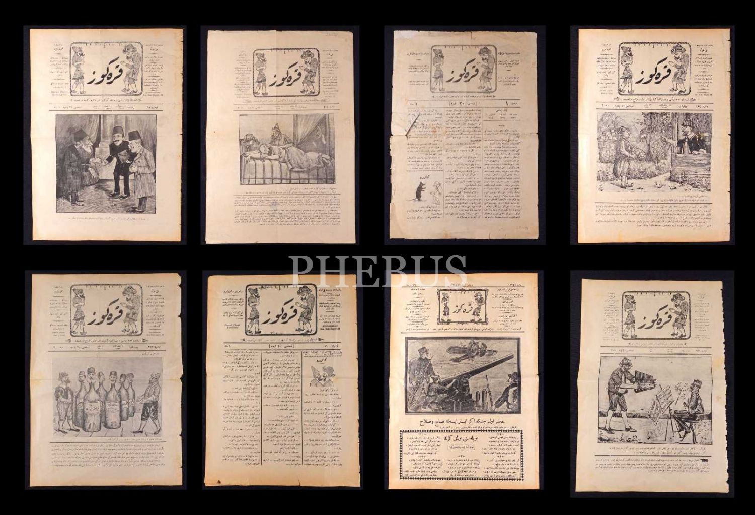 Mizah gazetesi Karagöz´ün 1908-1926 tarihlerinde yayımlanmış 8 sayısı, 28x40 cm