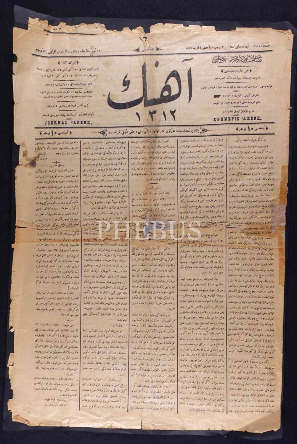 Ahenk gazetesinin 10 Ağustos 1908 tarihli sayısı, 37x55 cm