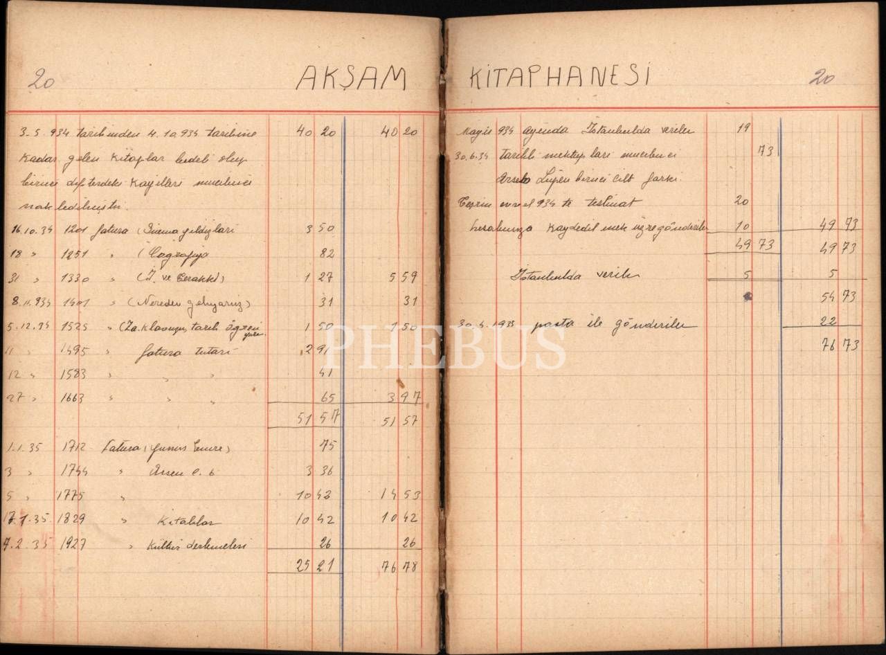 Defterde Kanaat Kütüphanesi, Akşam Kitaphanesi, Vakit, Milliyet Gazetesi, Suhulet Kitaphanesi vd.´ne ilişkin kayıtlar tutulmuştur.