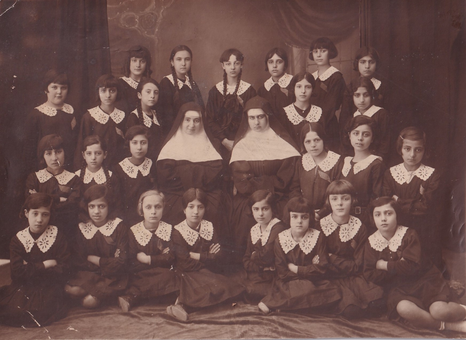 Osmanlı azınlık okulu kız öğreciler ve rahibeler toplu halde, 22x16 cm