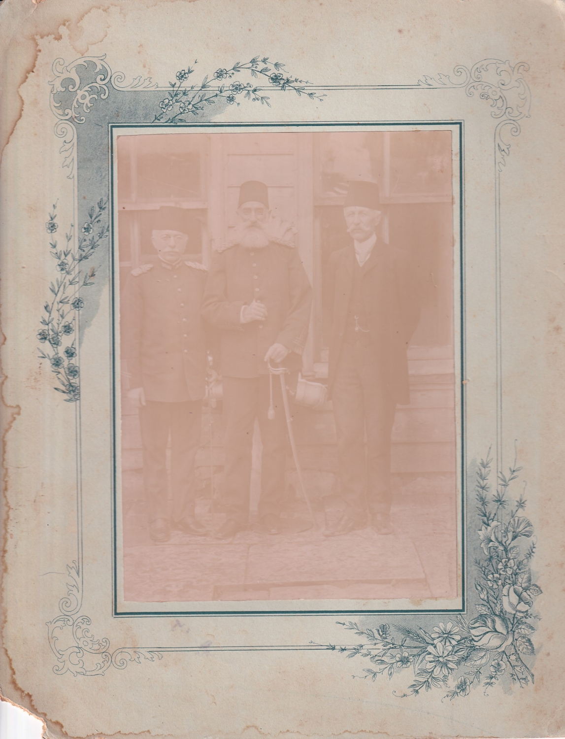 Osmanlı fesli sakallı subaylar büyük boy fotoğraf, 27x21 cm