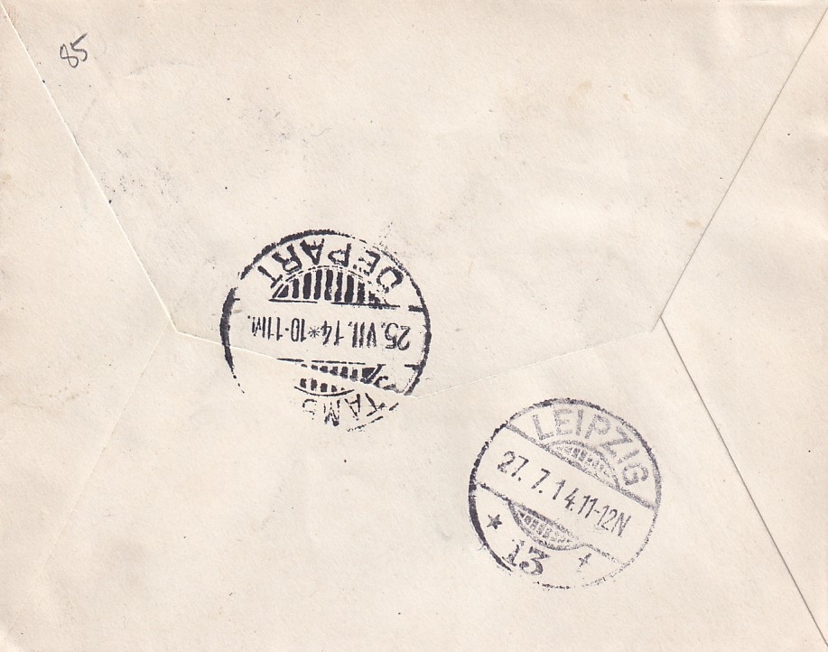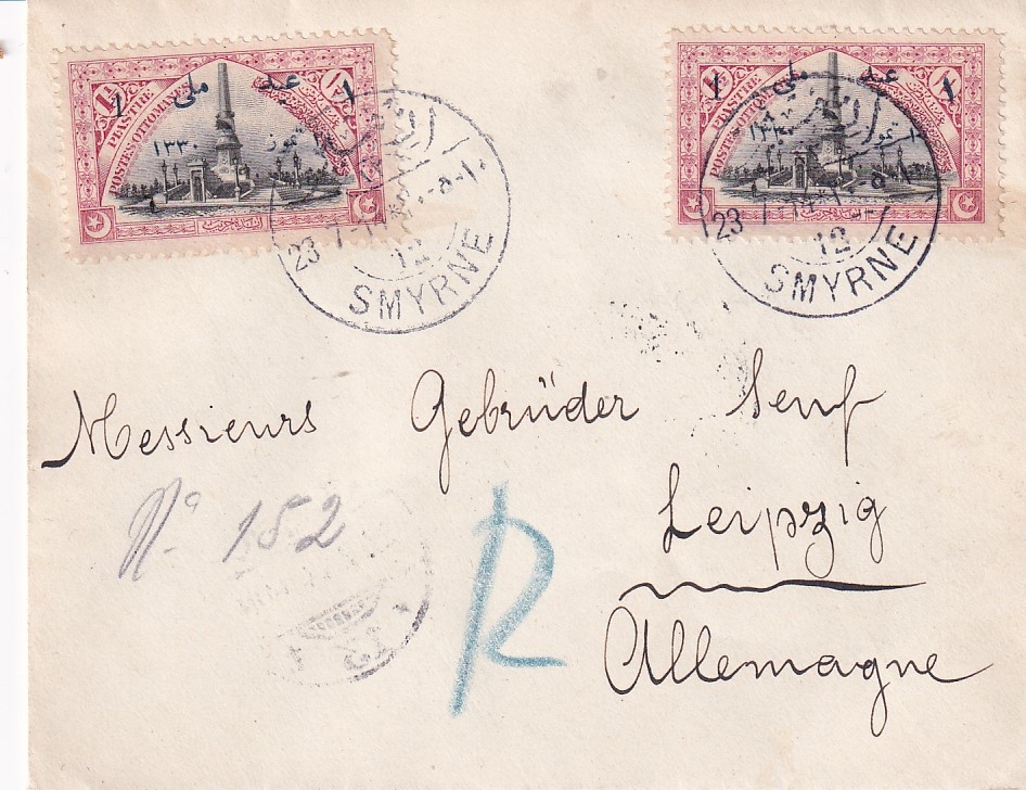 İzmir - Leipzig - Depart damgalı Leipzig adresli, postadan geçmiş zarf, 10x8 cm