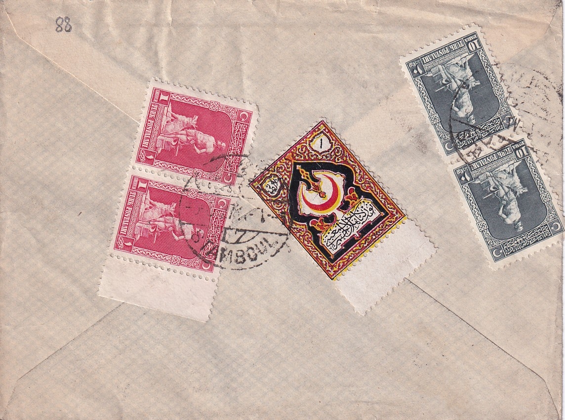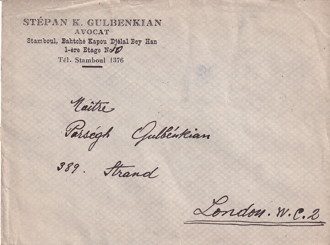 Avukat Stepan K. Gulbenkian - İstanbul antetli, Londra adresli Osmanlıca Hilal-i ahmer pullu damgalı , postadan geçmiş