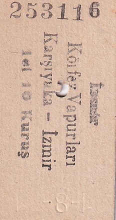 İzmir Körfez Vapurları, Karşıyaka karton bilet, 5x2 cm