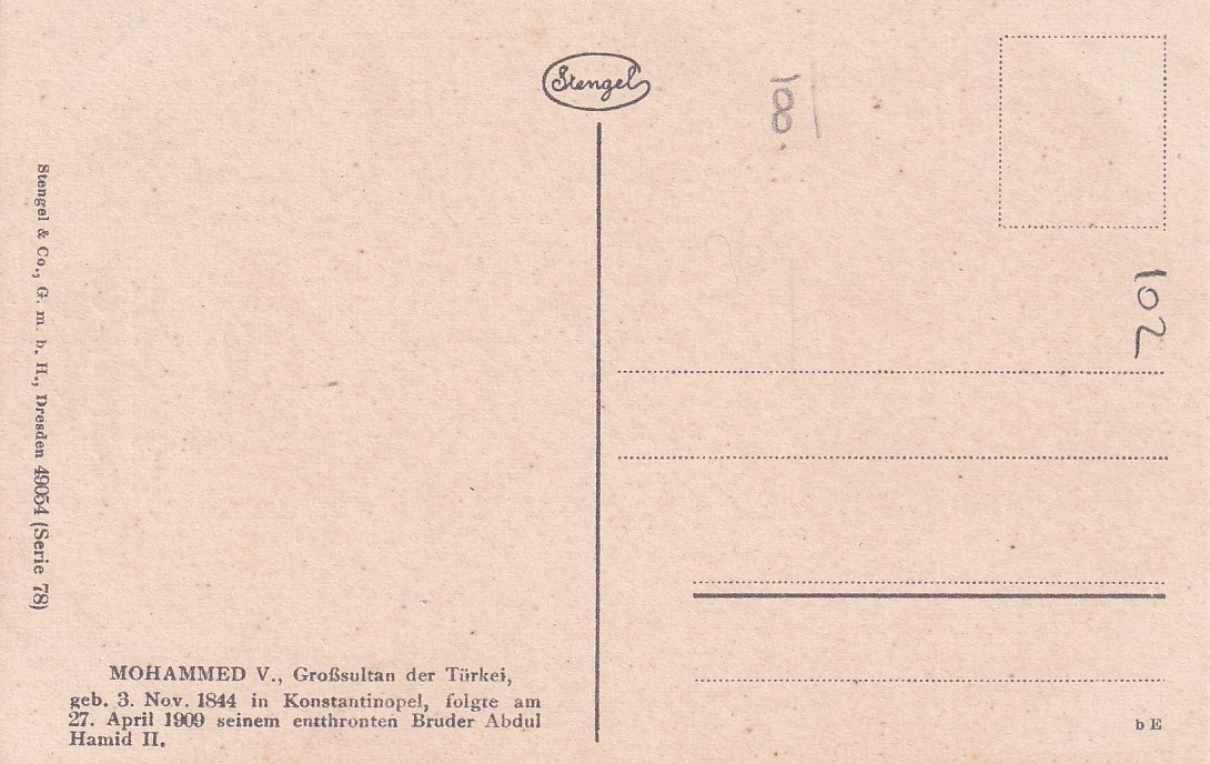 Padişah Mehmed Reşad Alman baskısı kartpostal