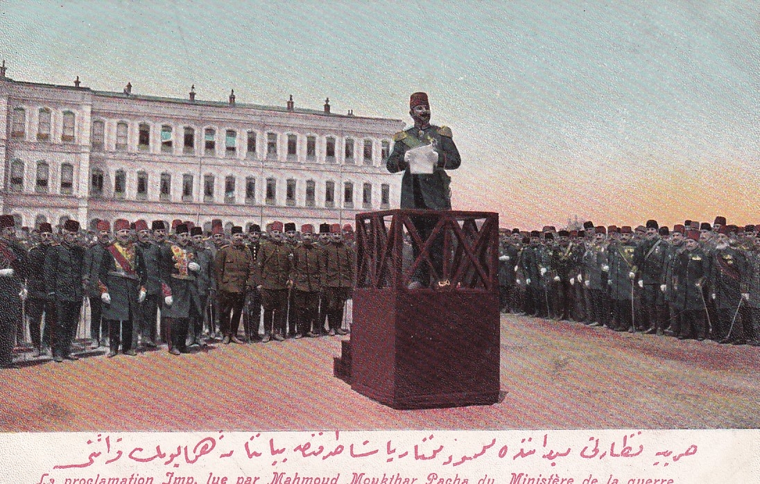Birinci Ordu-yu Osmaniye Kumandanı Mahmut Muhtar Paşa hazretleri tarafından Beyanname-i Hümayunun Harbiye Nezareti meydanında merasim-i mahsusa, ed., M.J.C.