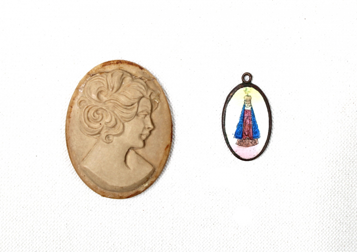 Cameo kolye ucu ve emaye üzeri rahibe tasvirli kolye ucu