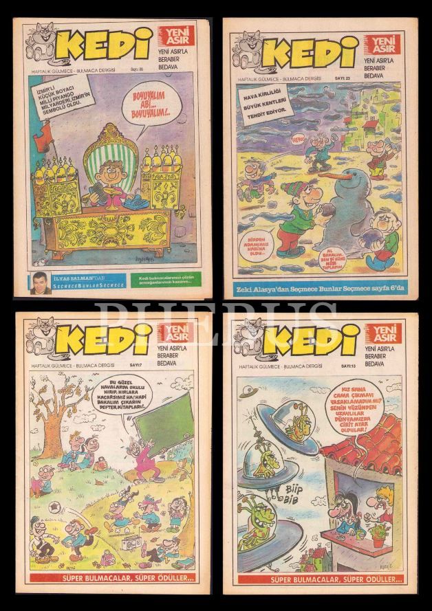 KEDİ mizah dergisi, 7-13-23-25 olmak üzere toplam 4 sayı, 1989, 20x28 cm