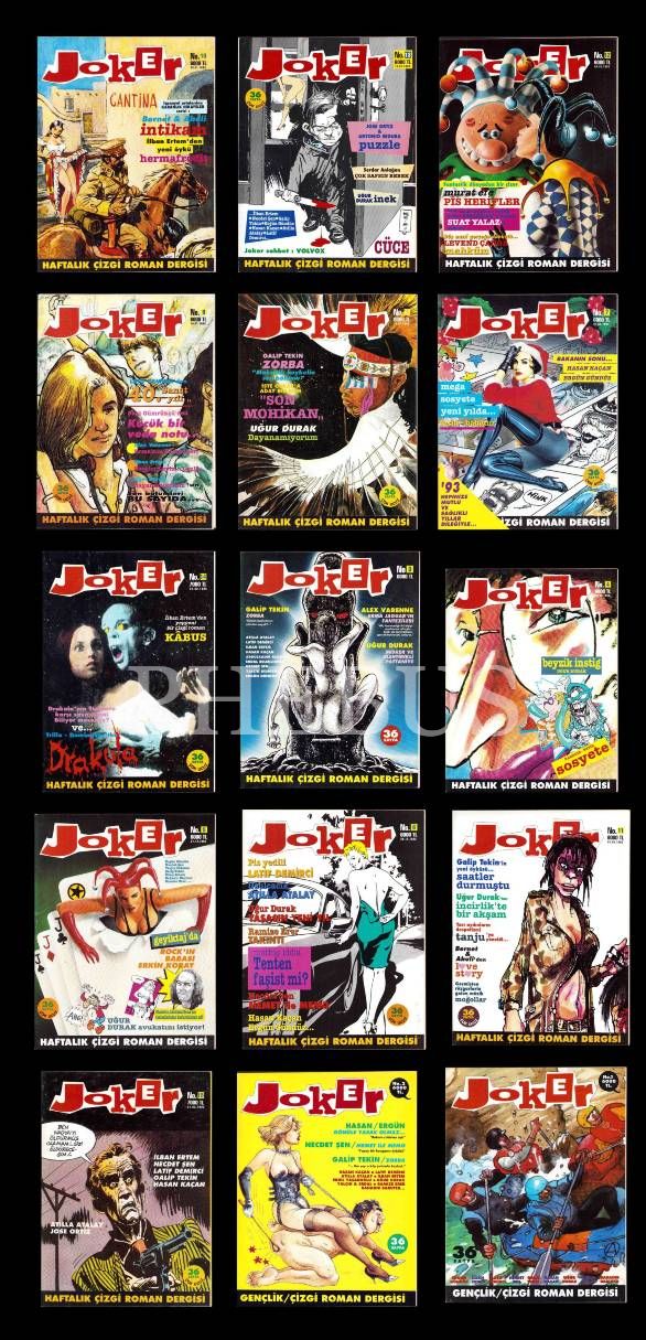JOKER Gençlik/ Çizgi Roman dergisinin (1-15) sıralı, son sayılar eksik, 22x28 cm