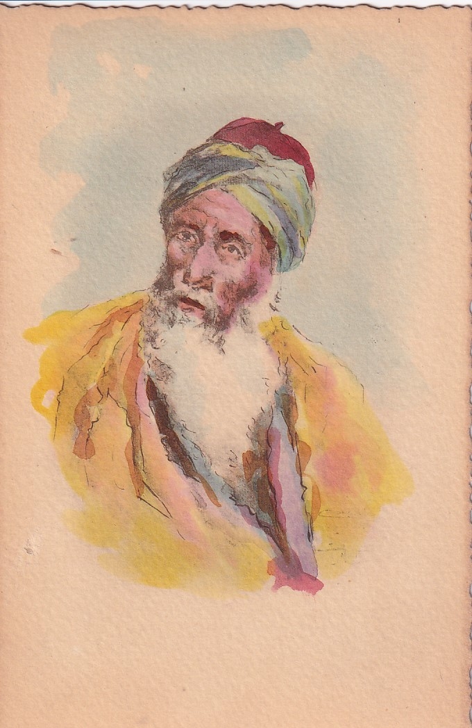 Osmanlı dönemi el yapımı suluboya kartpostal, Derviş tip