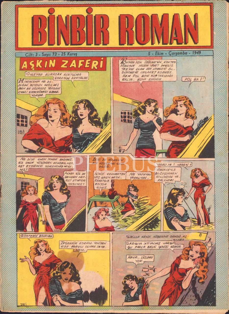 BİNBİR ROMAN, Cilt:3- Sayı:73, 25 kuruş, 1949, 8 sayfa, 25x34 cm
