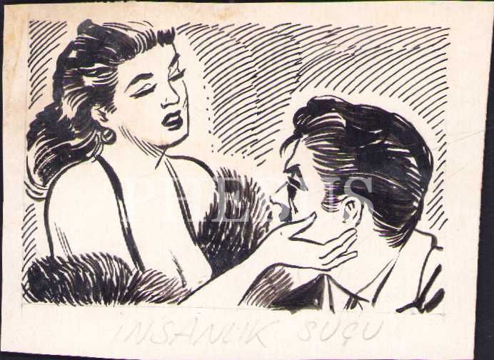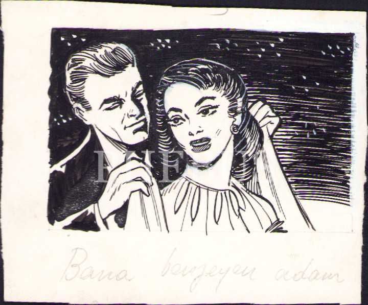Çeşitli çizgi roman sahnelerine ait 8 adet orijinal çizim, 9x6 cm