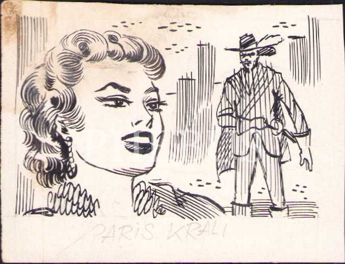 Çeşitli çizgi roman sahnelerine ait 4 adet orijinal çizim, 9x7 cm