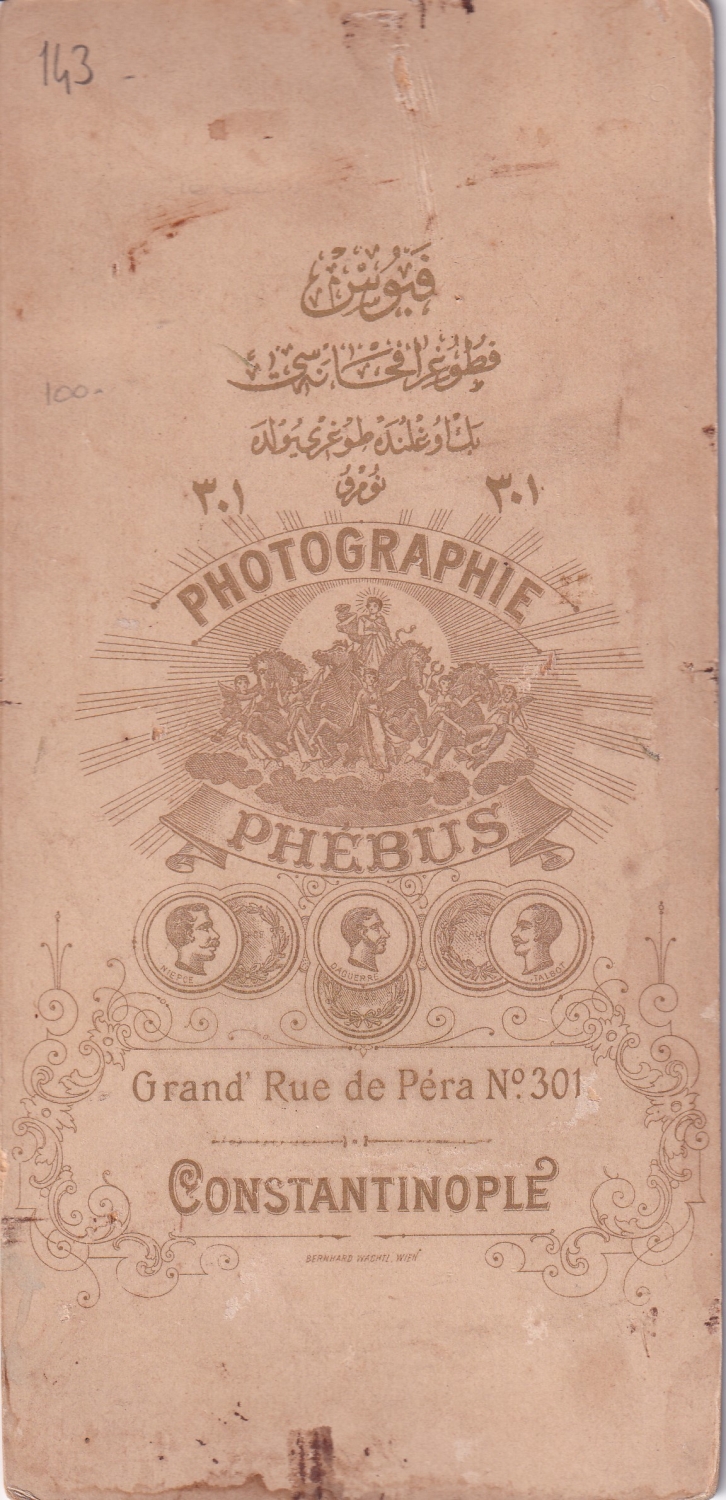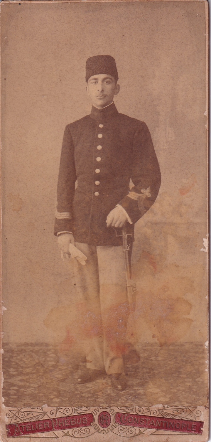 Osmanlı kılıçlı kalpaklı subay kabin fotoğrafı, Photographie Phebus Constantinople, 9x20 cm