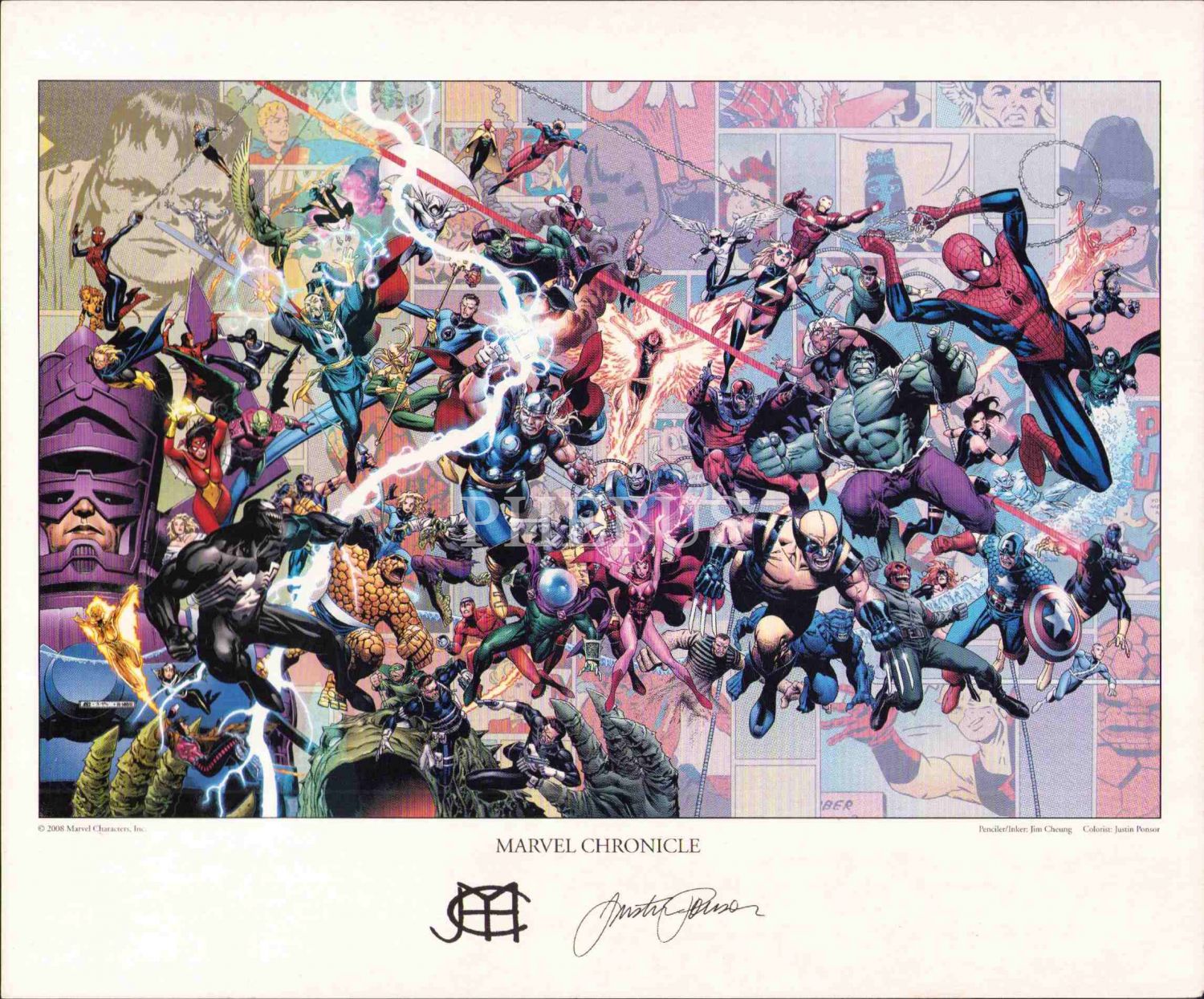 Marvel Karakterleri ıslak imzalı print 2008 baskı, 29x24 cm