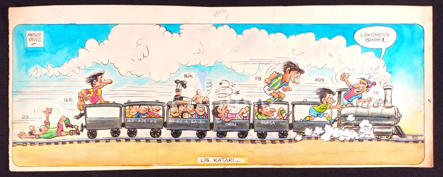Mesut Yavuz imzalı, "Lig Katarı" konulu karikatür, 48x19 cm
