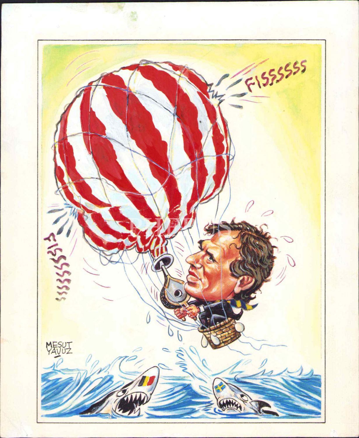 Mesut Yavuz imzalı, sönen Trabzonspor balonu temalı karikatür, 21x25 cm
