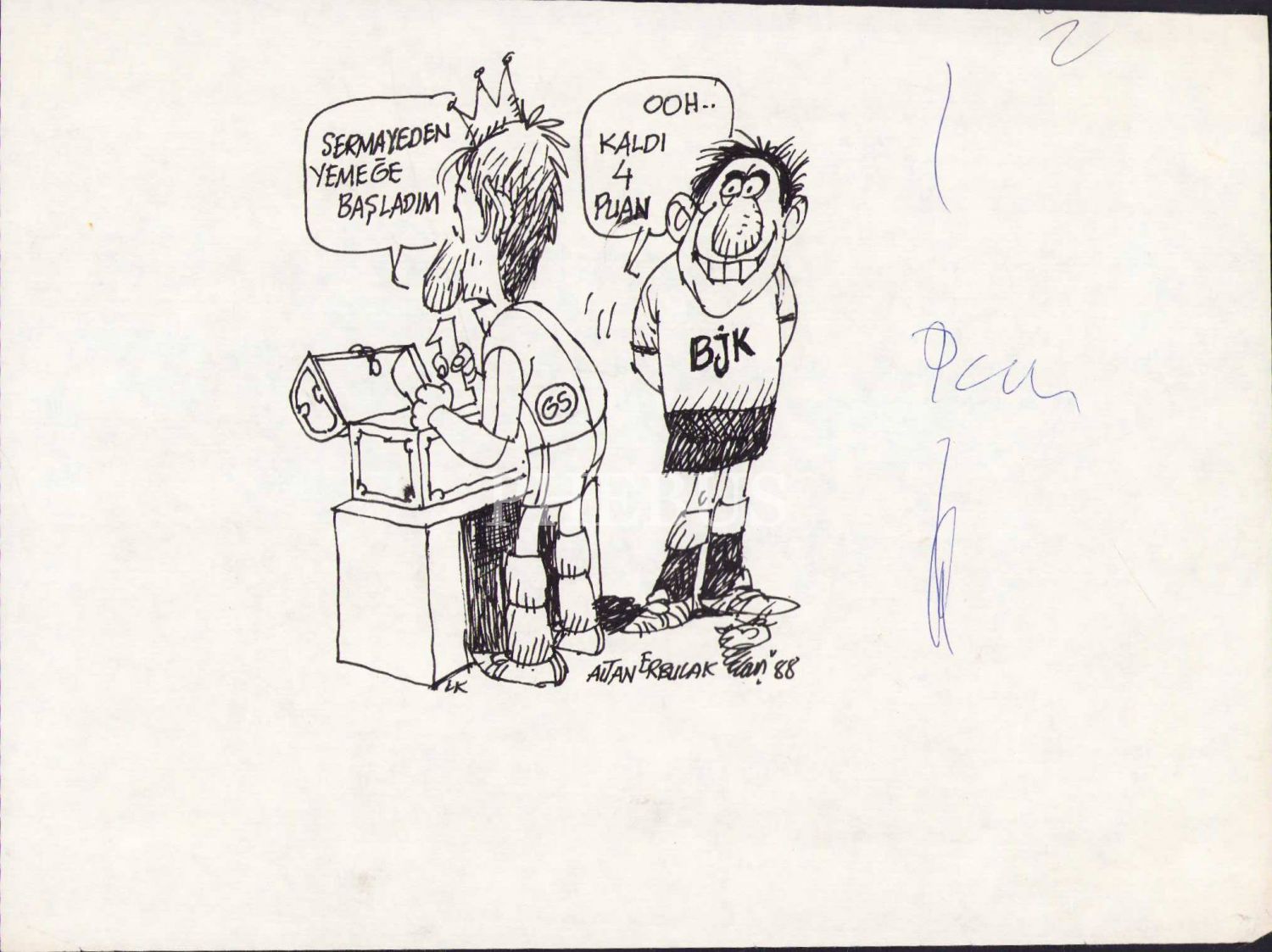 Altan Erbulak imzalı, 1988 tarihli Galatasaray ve Beşiktaş konulu karikatür, 26x19 cm