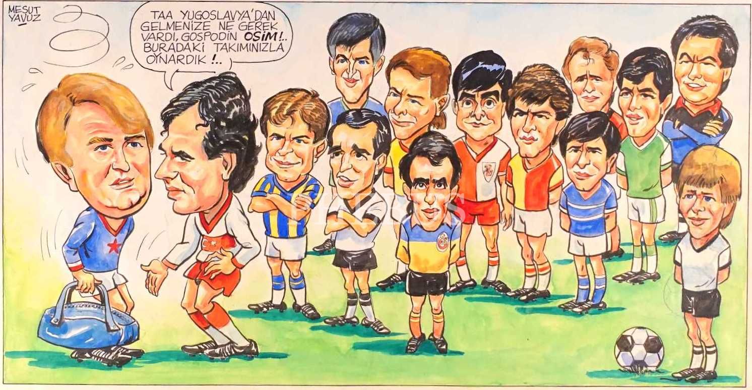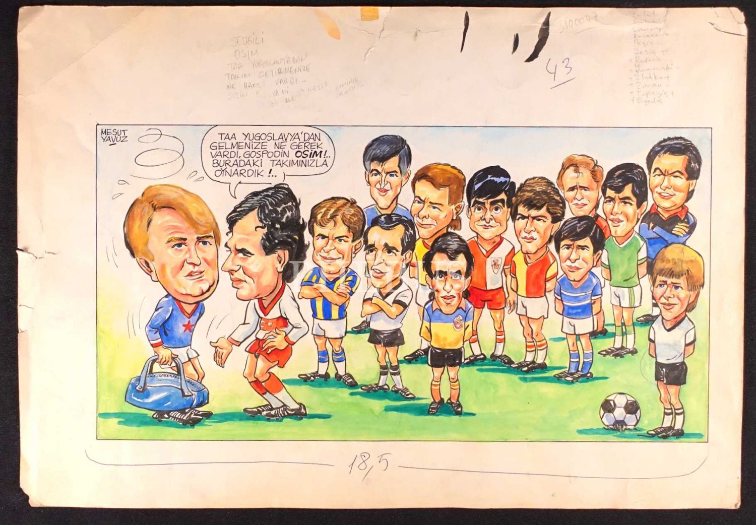 Mesut Yavuz imzalı, "Gospodin Osim" konulu karikatür, 50x35 cm