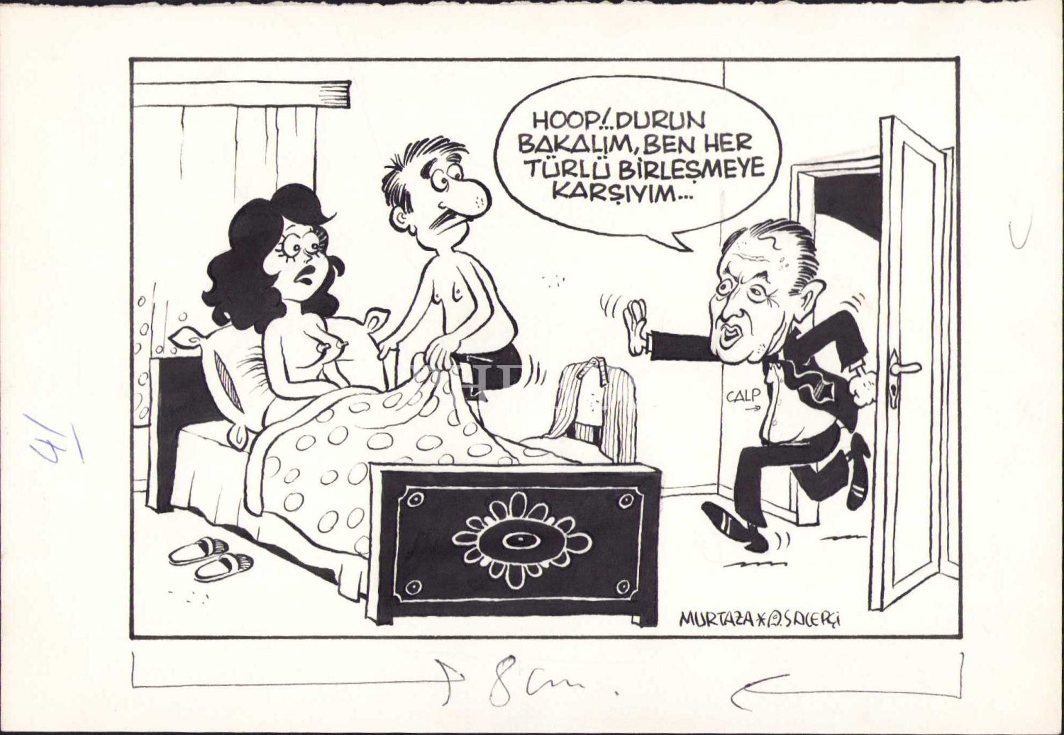 Murtaza imzalı, Necdet Calp konulu karikatür, 35x17 cm