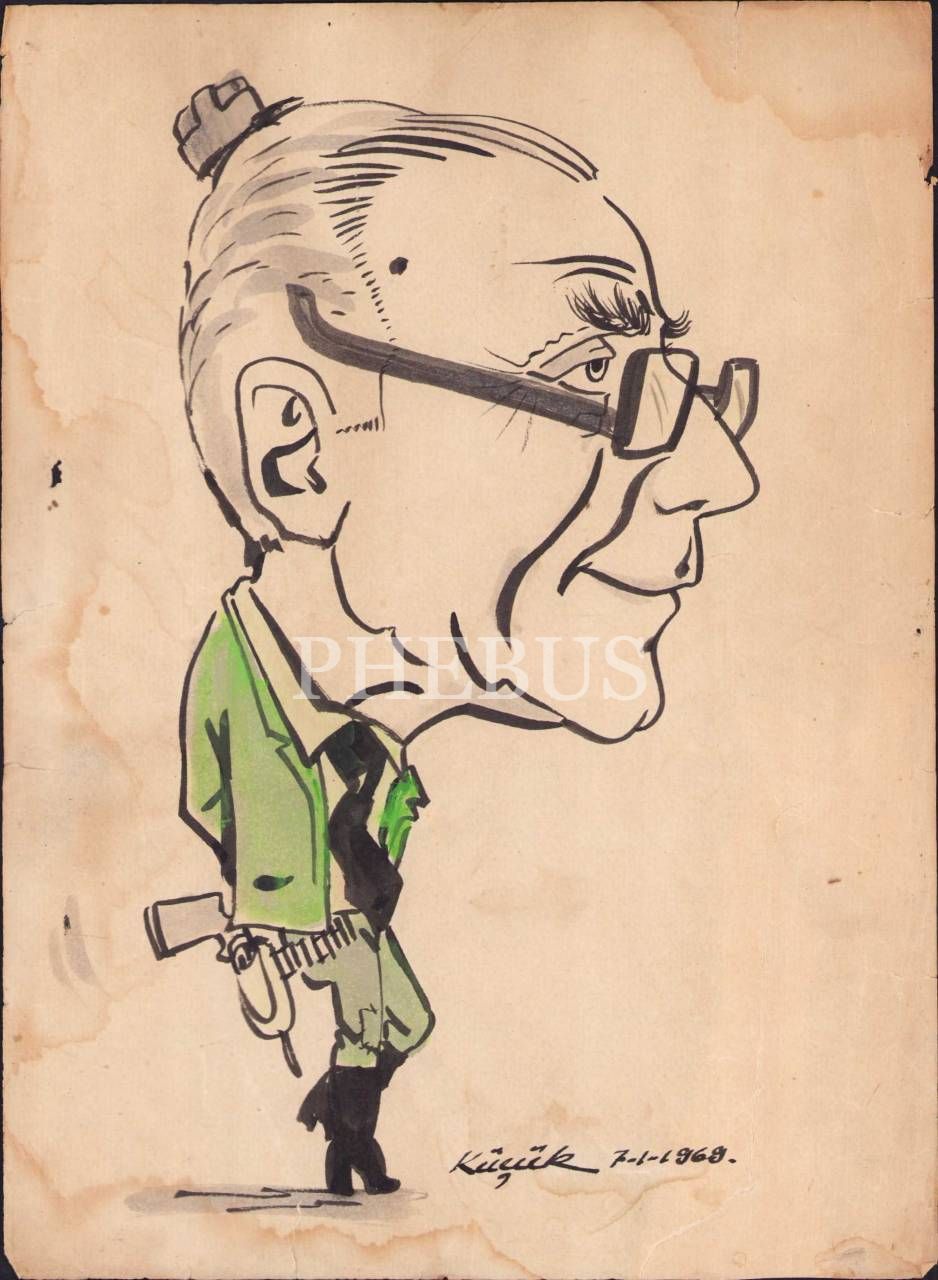 [Lütfi] Küçük imzalı, 1969 tarihli karikatür, 25x34 cm, yorgun haliyle