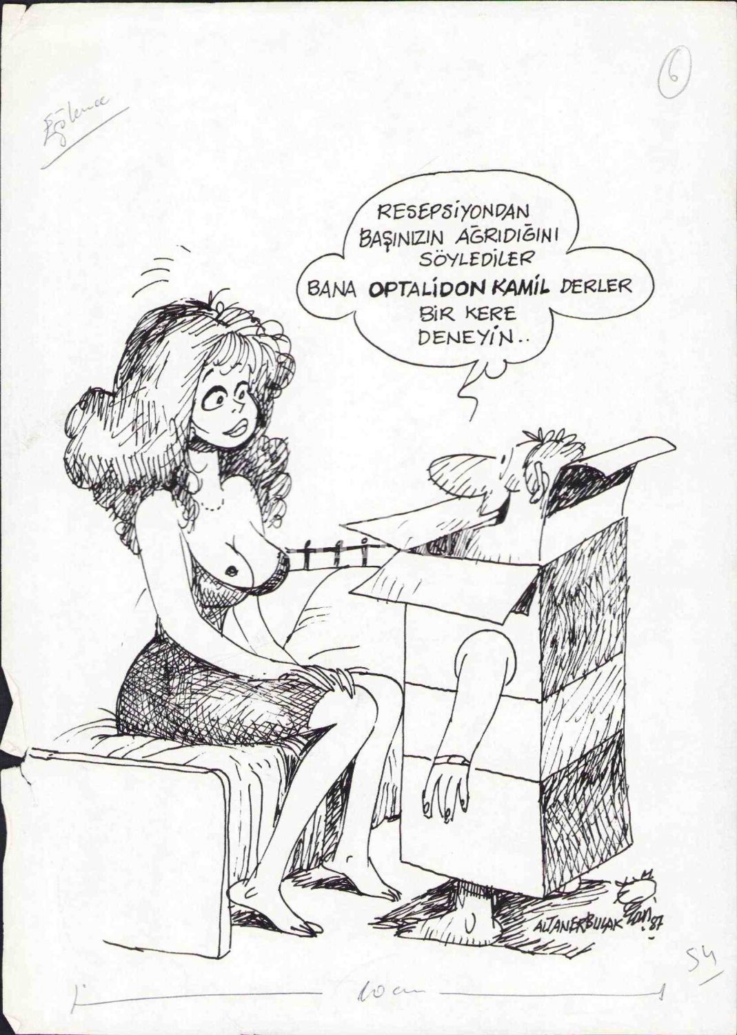 Altan Erbulak imzalı, 1987 tarihli erotik karikatür, 21x30 cm