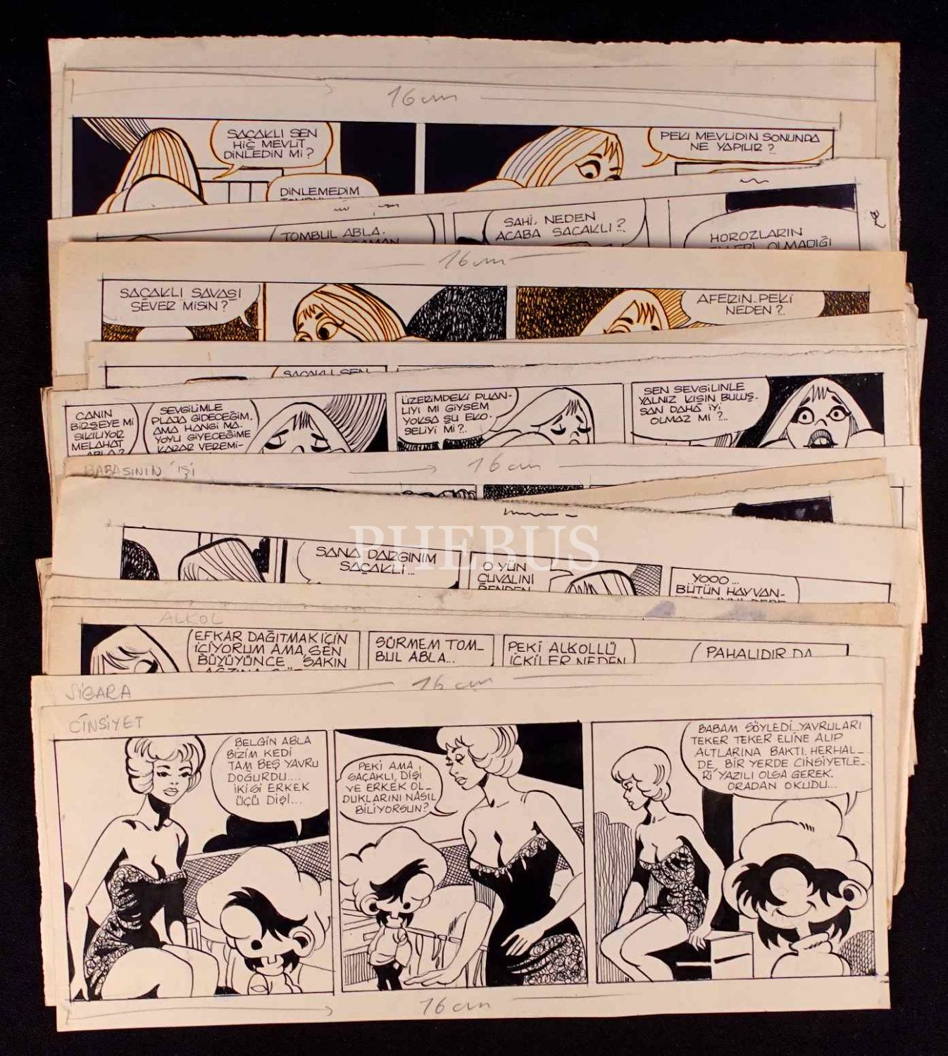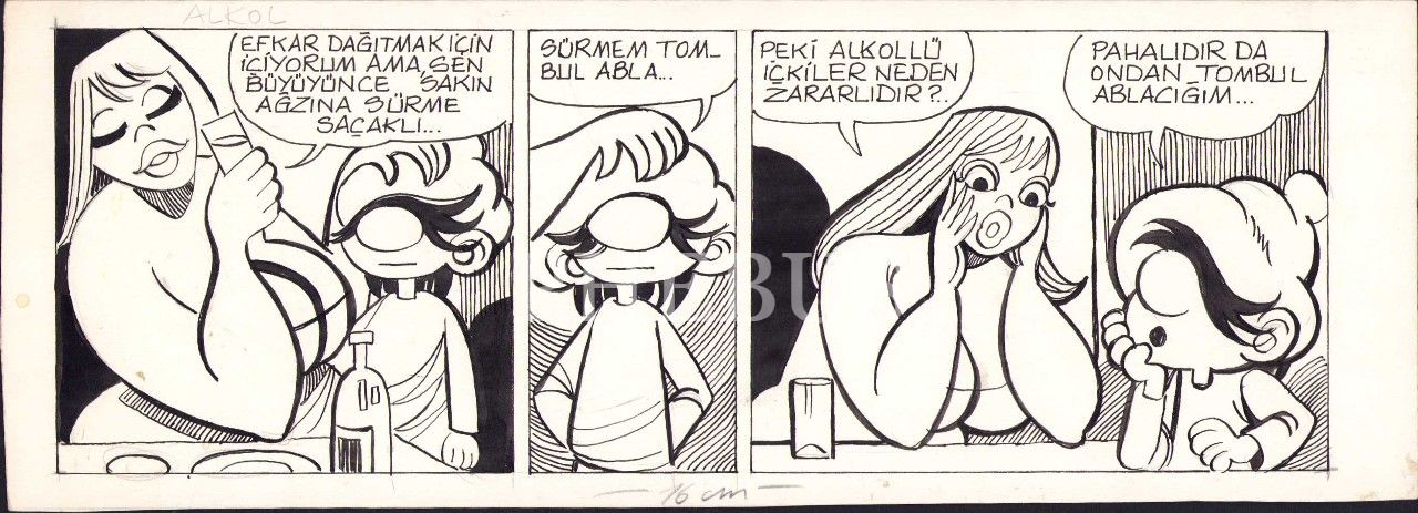 32 adet siyah beyaz karikatür, 35x13 cm