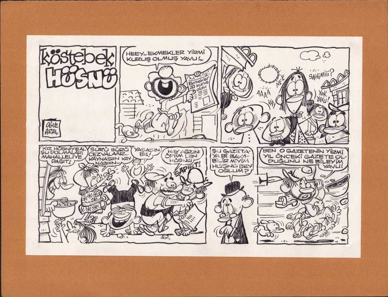 Oğuz Aral imzalı "Köstebek Hüsnü" çizimi, 33x25 cm