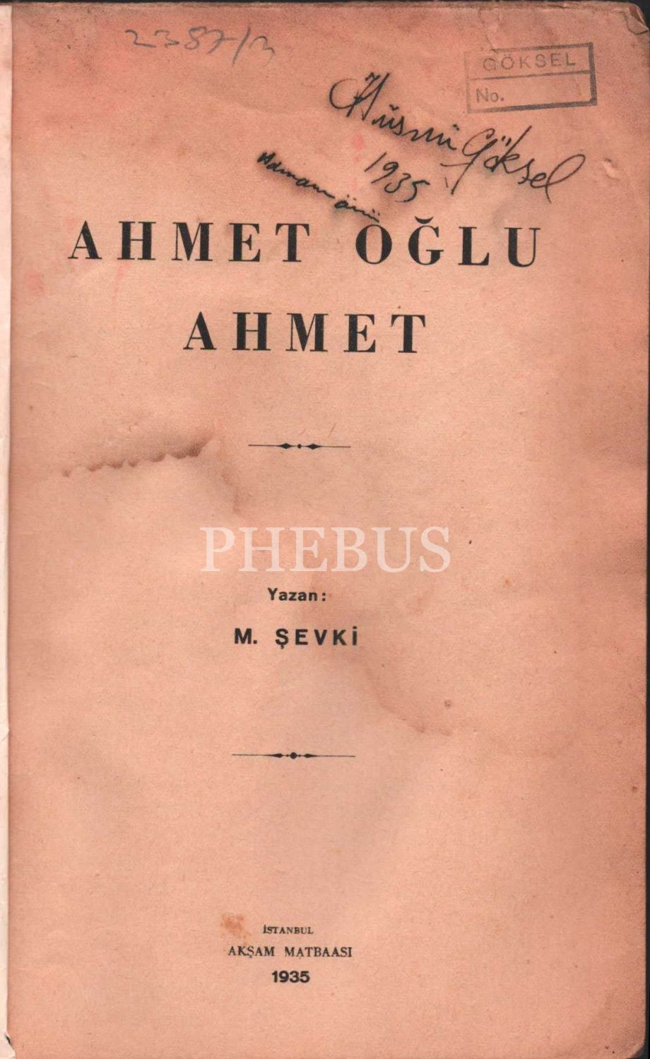 AHMET OĞLU AHMET (Savaş Hikayeleri), M. Şevki, Akşam Matbaası 1935, 70 sayfa, 15x23 cm