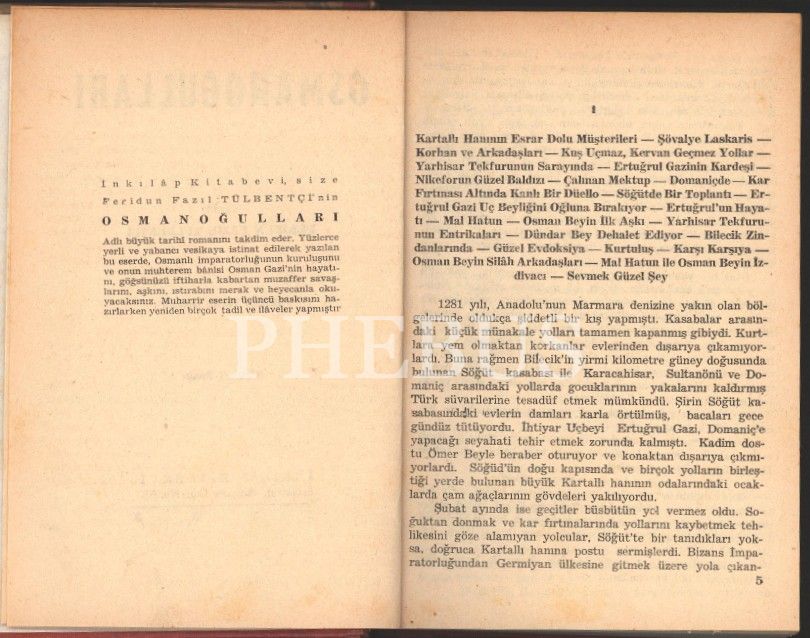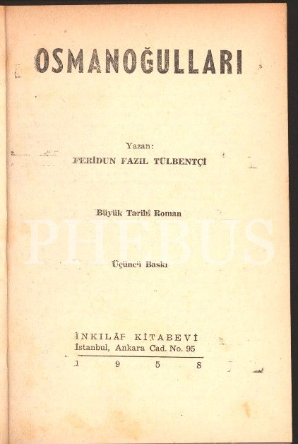 OSMANOĞULLARI, Feridun Fazıl Tülbentçi, İnkılap Kitabevi, İstanbul -1958, 574 sayfa, 14x20 cm
