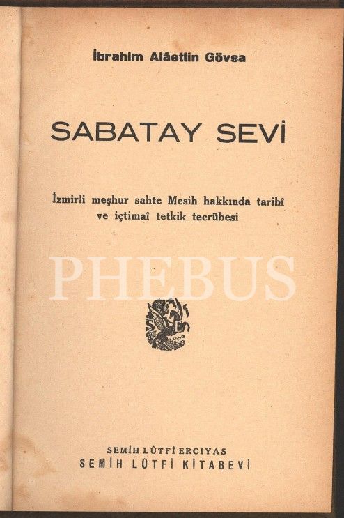 SABATAY SEVİ, İbrahim Alaettin Gövsa, Semih Lütfi Kitabevi, 97 sayfa, 14x20 cm