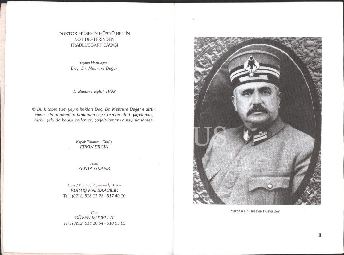 DR. HÜSEYİN HÜSNÜ BEY´İN NOT DEFTERİNDEN TRABLUSGARP SAVAŞI, Doç. Dr. Mebrure Değer, Eylül 1998, 80 sayfa, 15x21 cm