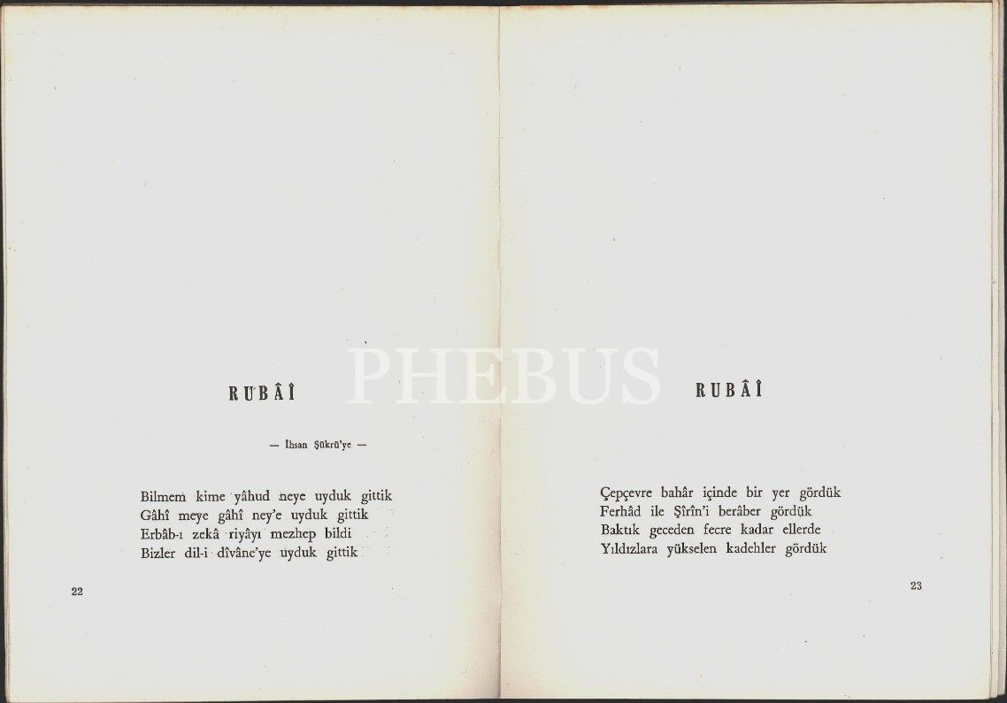RUBAİLER, Yahya Kemal, Yahya Kemal Enstitüsü, 1963, 60 sayfa, 14x20 cm
