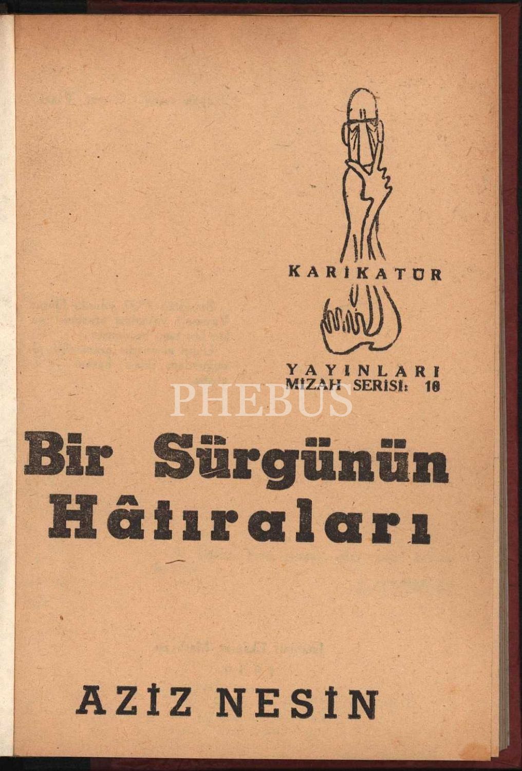 BİR SÜRGÜNÜN HATIRALARI, Aziz Nesin, Karikatür Yayınları Mizah Serisi: 10, 1959, 111 sayfa, 14x20 cm