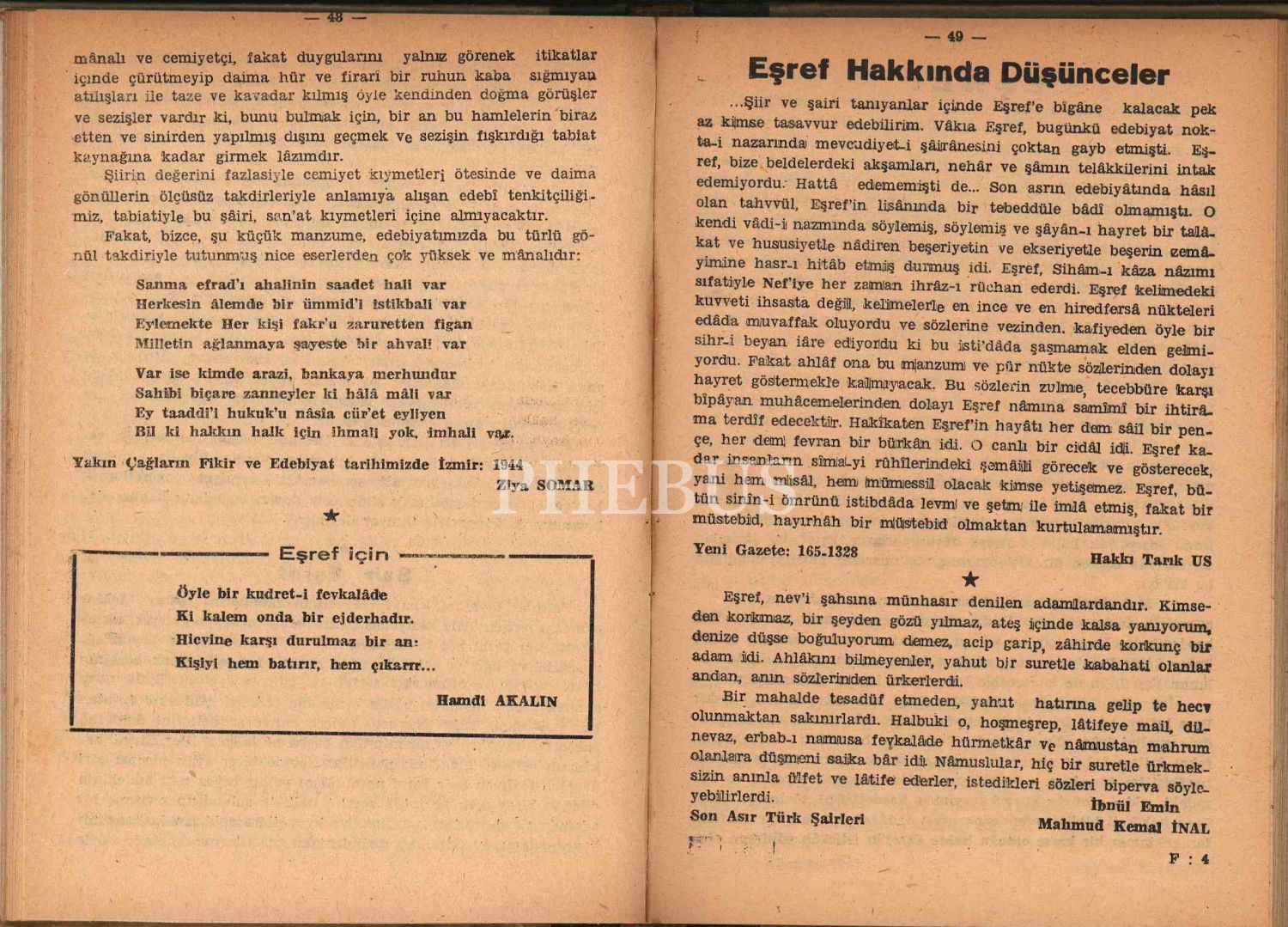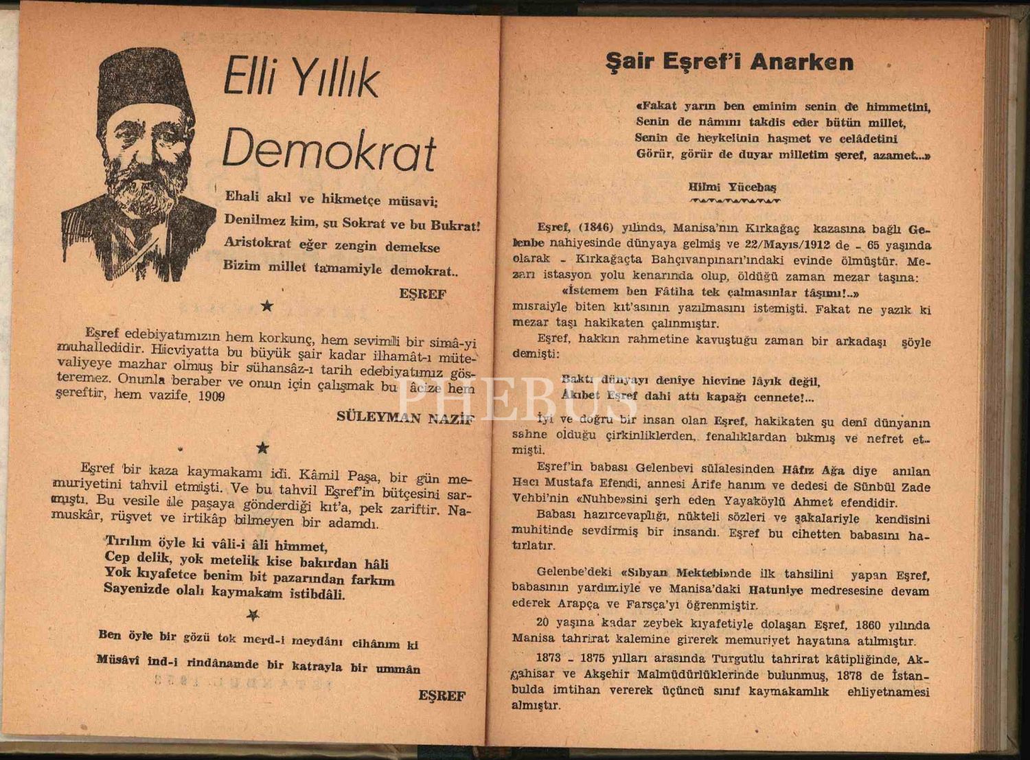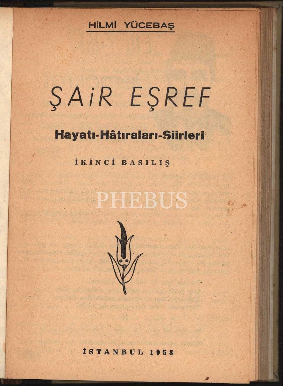 ŞAİR EŞREF HAYATI-HATIRALARI-ŞİİRLERİ, Hilmi Yücebaş, İstanbul 1958, 160 sayfa, 14x20 cm