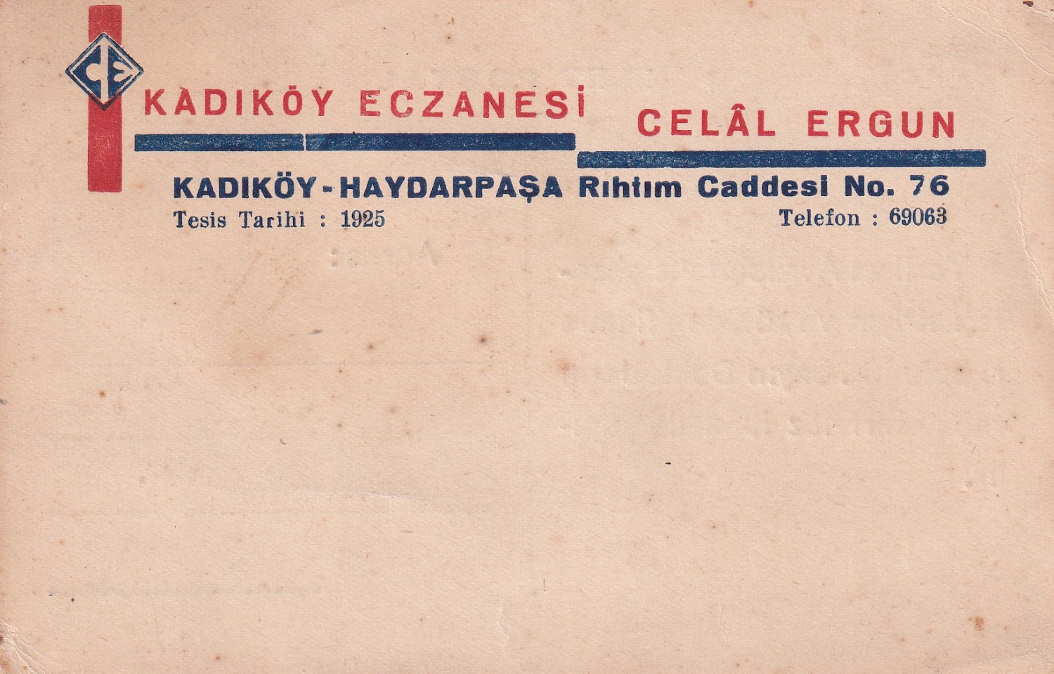 Kadıköy Eczanesi formüler kartpostal, Celal Ergun