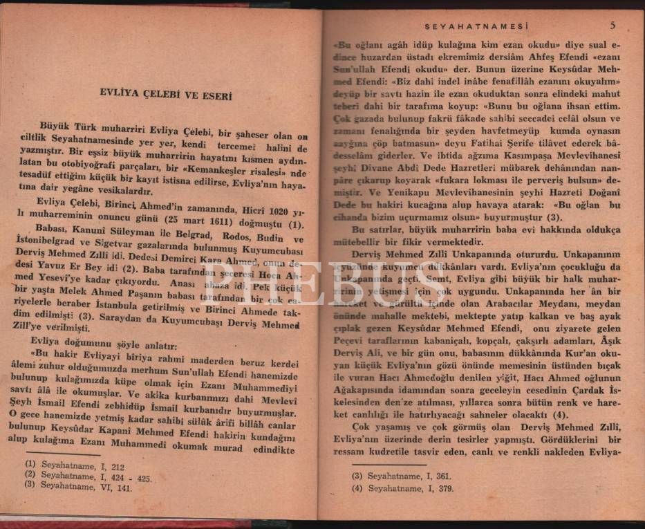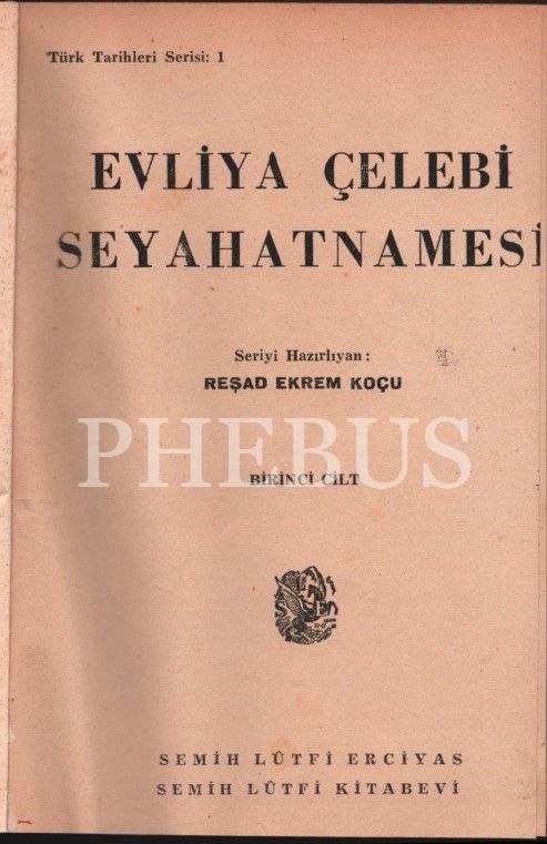 EVLİYA ÇELEBİ SEYAHATNAMESİ (Cilt I-II), Reşad Ekrem Koçu, Türk Tarihleri Serisi: 1, Semih Lütfi Kitabevi, 176+143 sayfa, 14x20 cm