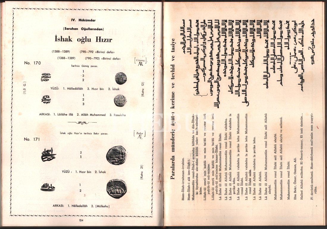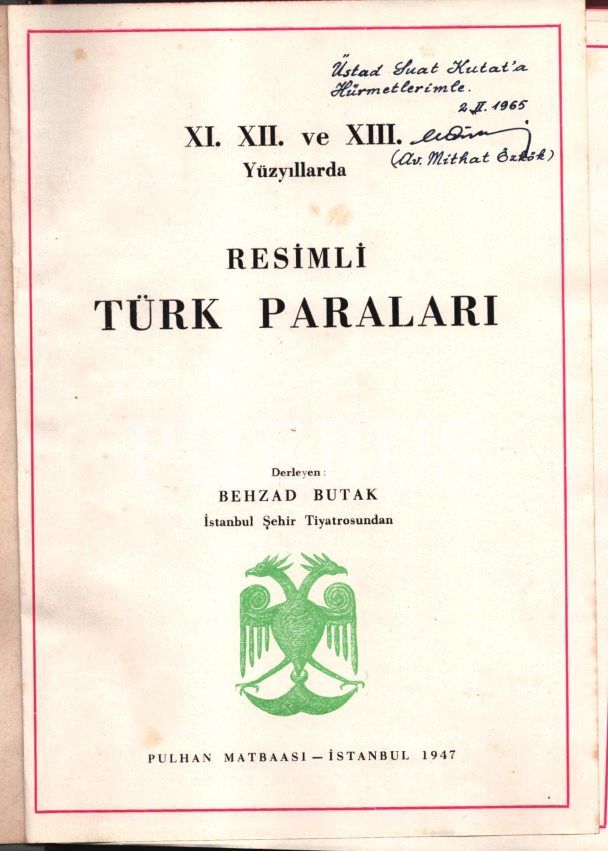 XI. XII. VE XIII. YÜZYILLARDA RESİMLİ TÜRK PARALARI, Derleyen: Behzad Butak (İstanbul Şehir Tiyatrosundan), Pulhan Matbaası - İstanbul 1947, 140 sayfa, 18x24 cm