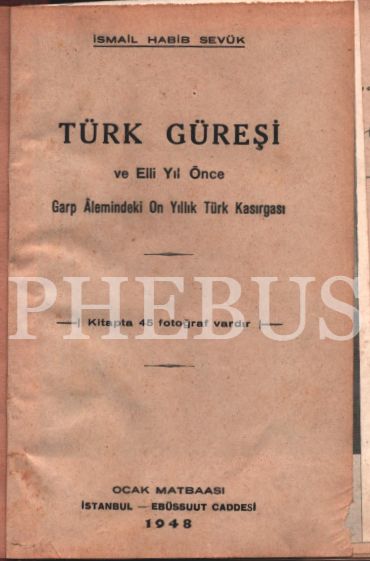 TÜRK GÜREŞİ, İsmail Habib Sevük´ten ithaflı ve imzalı, Ocak Matbaası, İstanbul - 1948, 296 sayfa, 14x20 cm