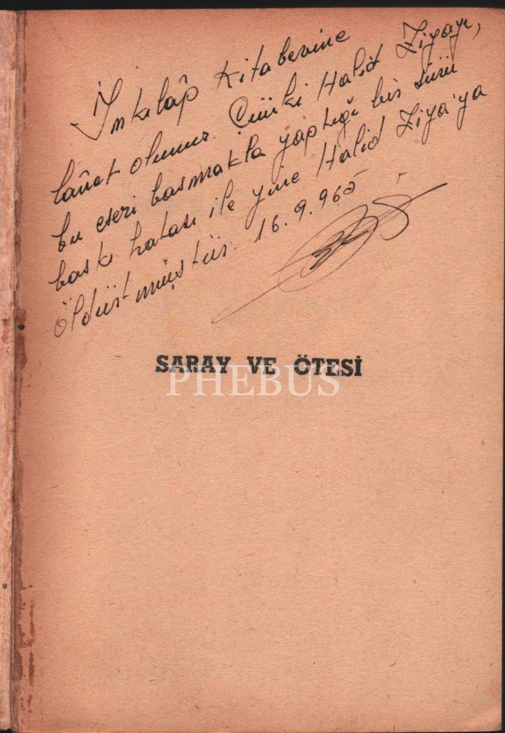 Kitabın ilk sayfasında " İnkılâp Kitabevine lânet olunur. Çünki Halid Ziyayı, bun eseri basmakla yaptığı bir sürü baskı hatası ile yine Halid Ziya´ya öldürtmüştür. 16.9.965" şeklinde imzalı bir not bulunmaktadır.