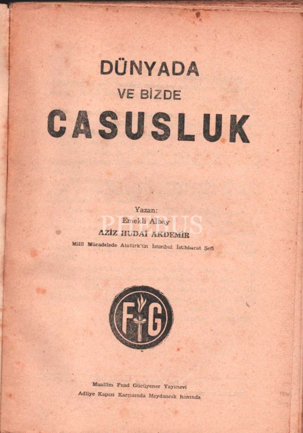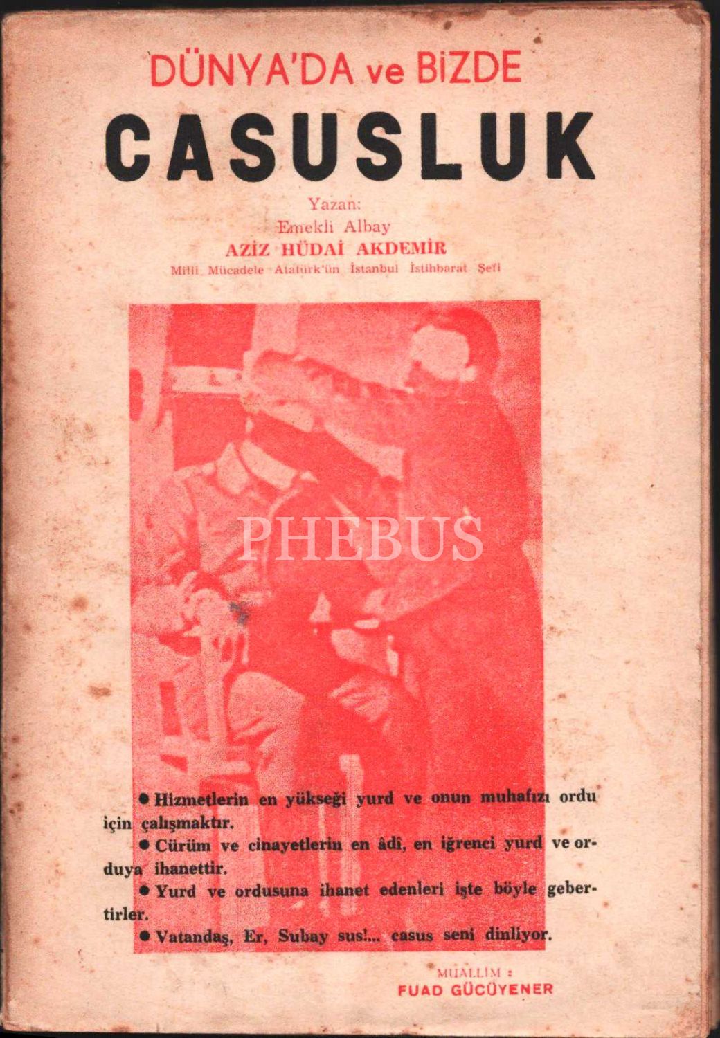 DÜNYA´DA VE BİZDE CASUSLUK, Emekli Albay Aziz Hüdai Akdemir, Muallim Fuad Gücüyener Yayınevi, 192 sayfa, 14x20 cm