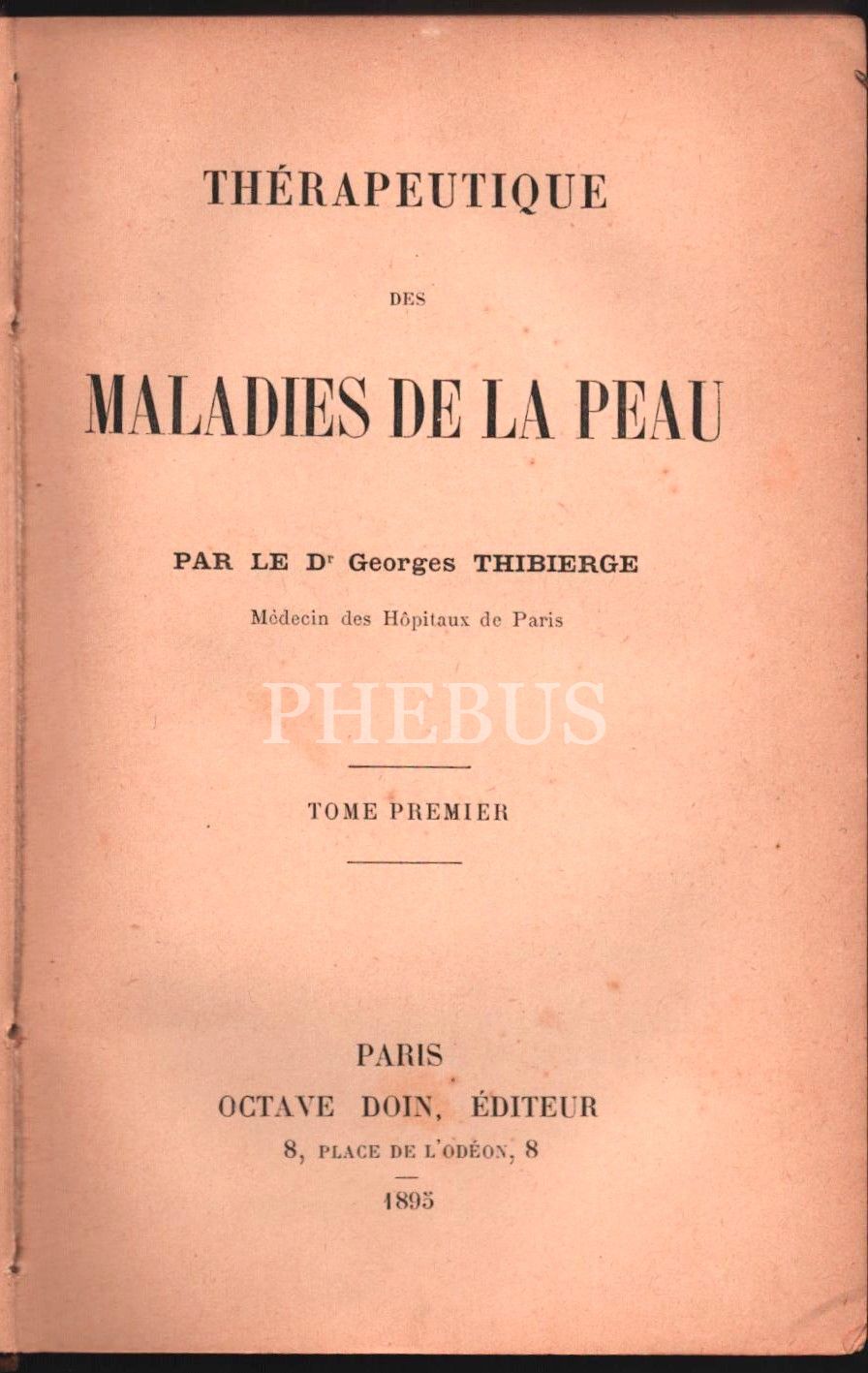 THERAPEUTIQUE - DES MALADIES DE LA PEAU (Cilt I-II), Georges Thibierge, Paris - 1895, 412+374 sayfa, 12x18 cm