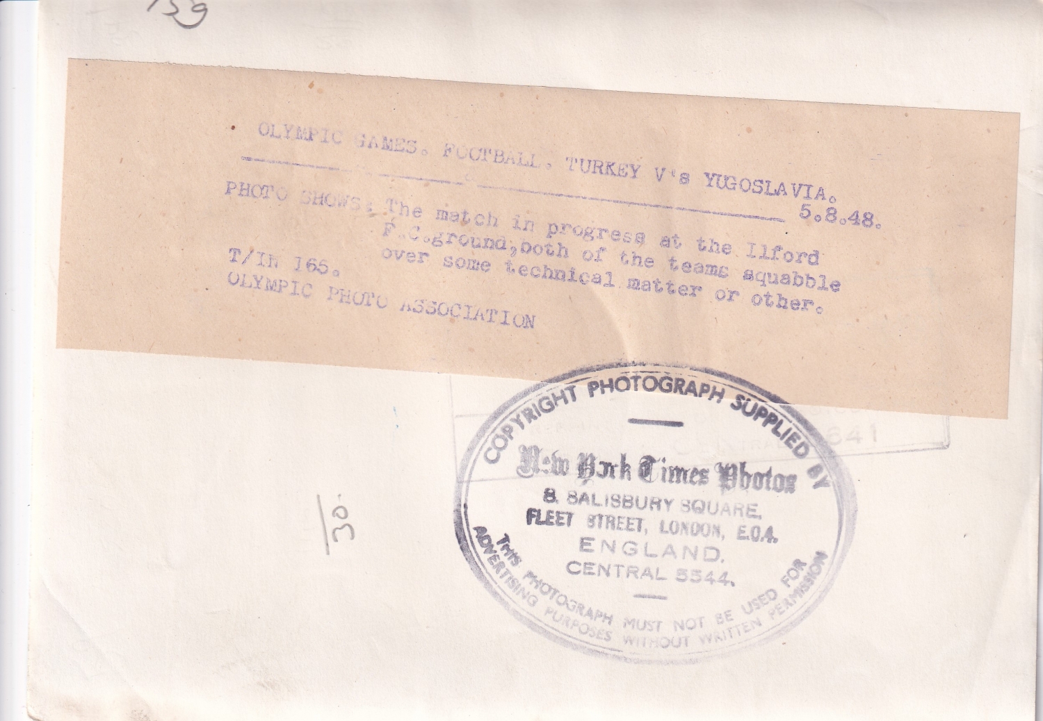 5 Ağustos 1948 Londra Olimpiyatları futbol çeyrek final mücadelesi, Türkiye Yugoslavya maçı, 20x14 cm