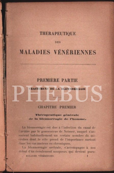 THERAPEUTIQUE - DES MALADIES VENERIENNES, F. Balzer, Paris, 280 sayfa, 12x18 cm, sırtı haliyle